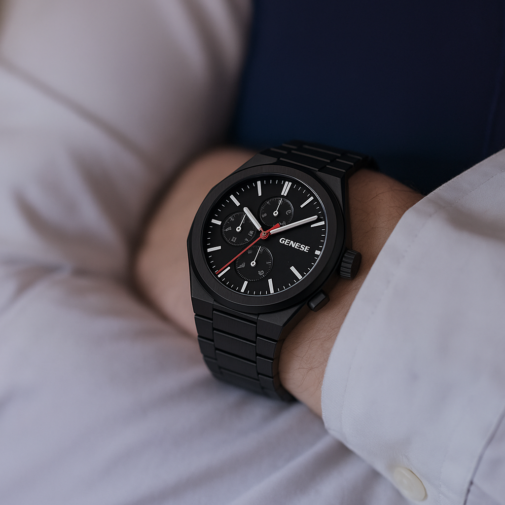Symbole d’excellence et de prestige, la GENESE GALAXIE Noir transcende la simple fonction d’une montre.